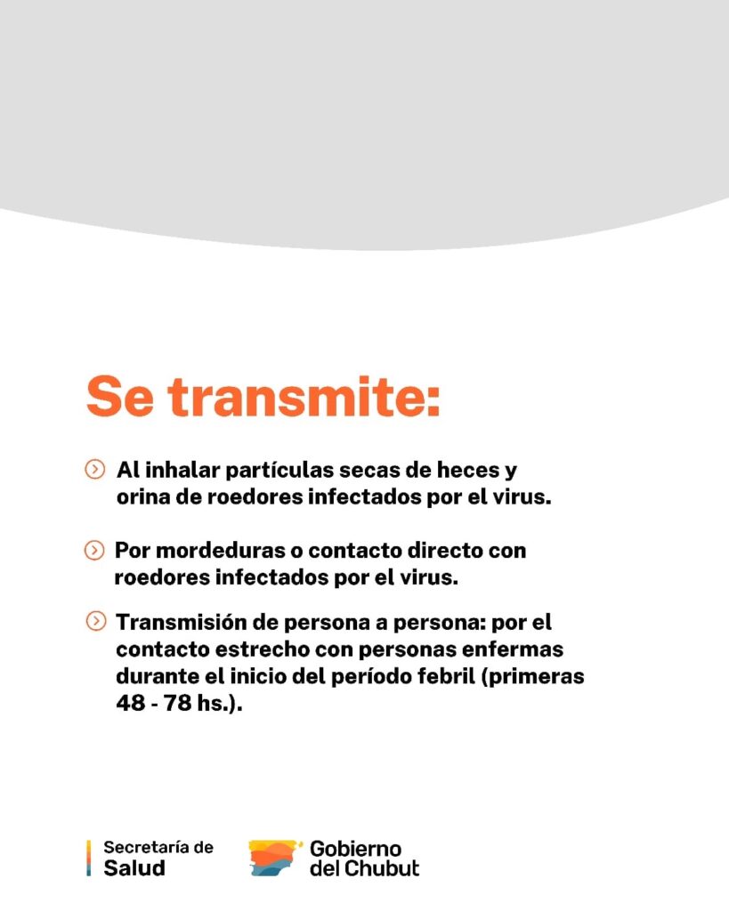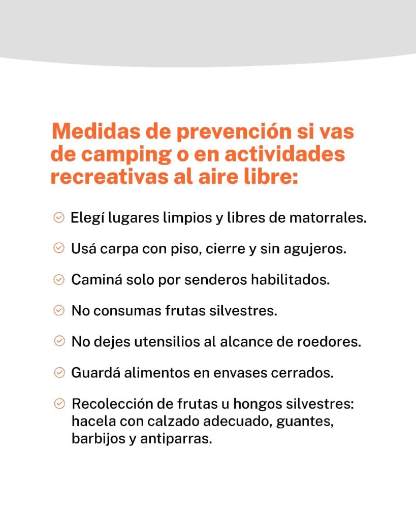 Desde la Secretaría de Salud también recordaron medidas preventivas como evitar el contacto con roedores, ventilar los ambientes cerrados, limpiar con lavandina, mantener el entorno limpio y utilizar protección respiratoria en tareas de limpieza o en lugares potencialmente contaminados.